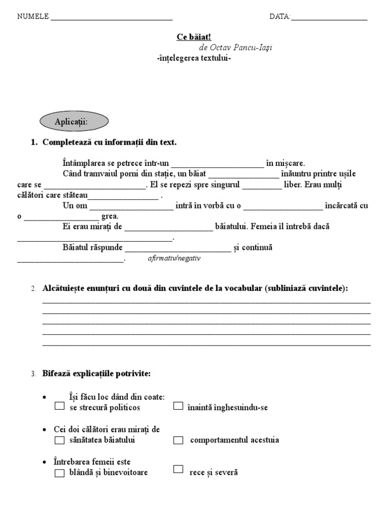 Ce Baiat După Octavian Pancu Iasi Povestire Brainly Ro