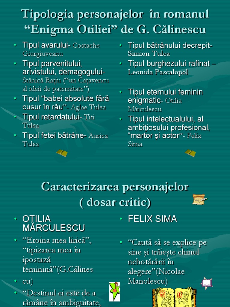 Tipologia Personajelor Felix Si Otilia