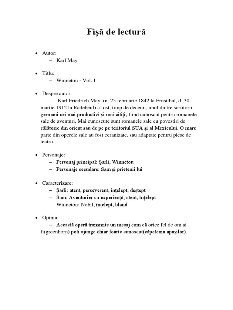 Winnetou I Karl May Rezumat Fisa De Lectura