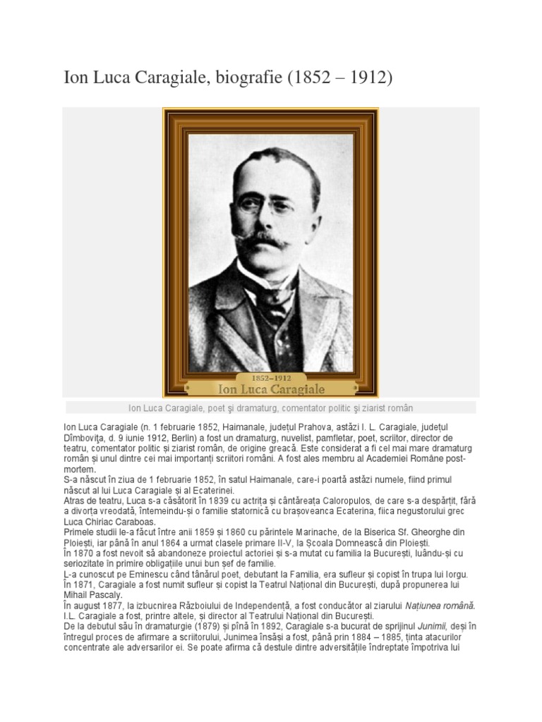 Biografia Lui Ioan Luca Caragiale Referate Pentru Tine