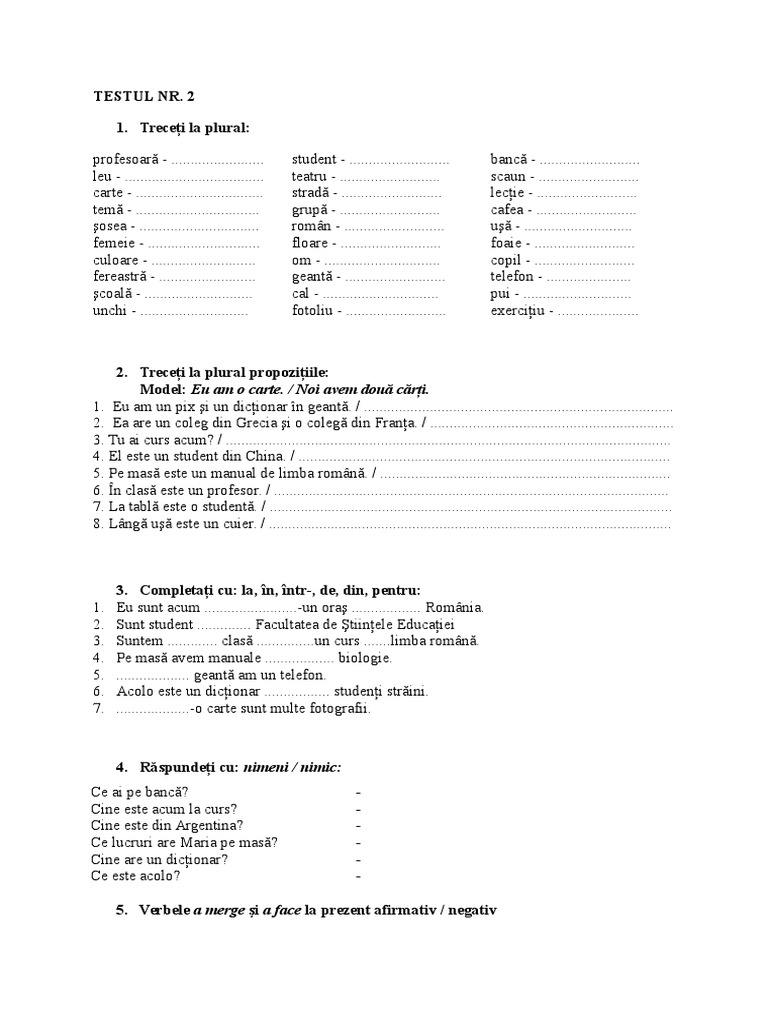 Limba Romană Pentru Studenţii Străini Teste Si Exerciţii