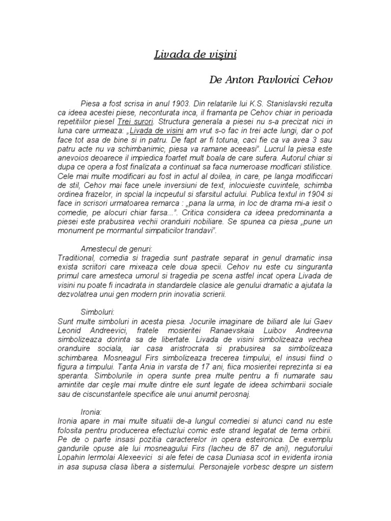Pdf A P Cehov Livada Cu Visini Mihaela Iftene Academia Edu