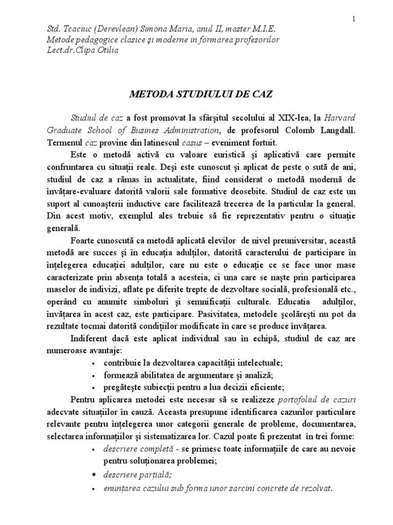 Metoda Studiului De Caz Didactic Ro
