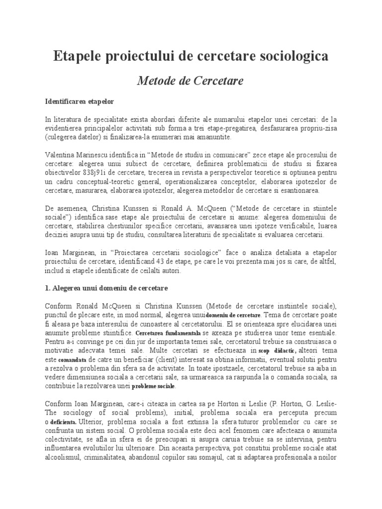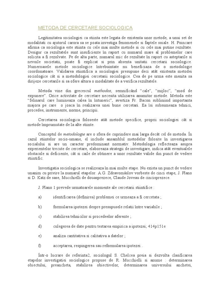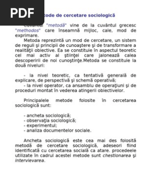 Referat Metode De Cercetare In Sociologie Sociologie 12539