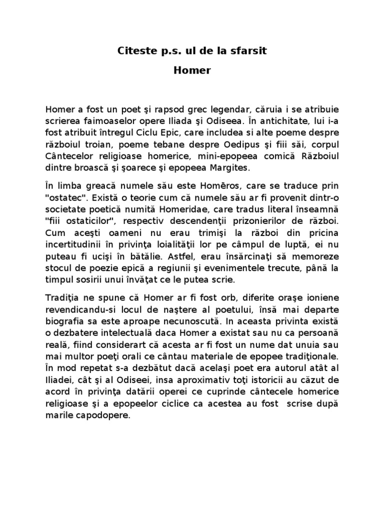 Referat Clopotel Ro Iliada Si Odiseea