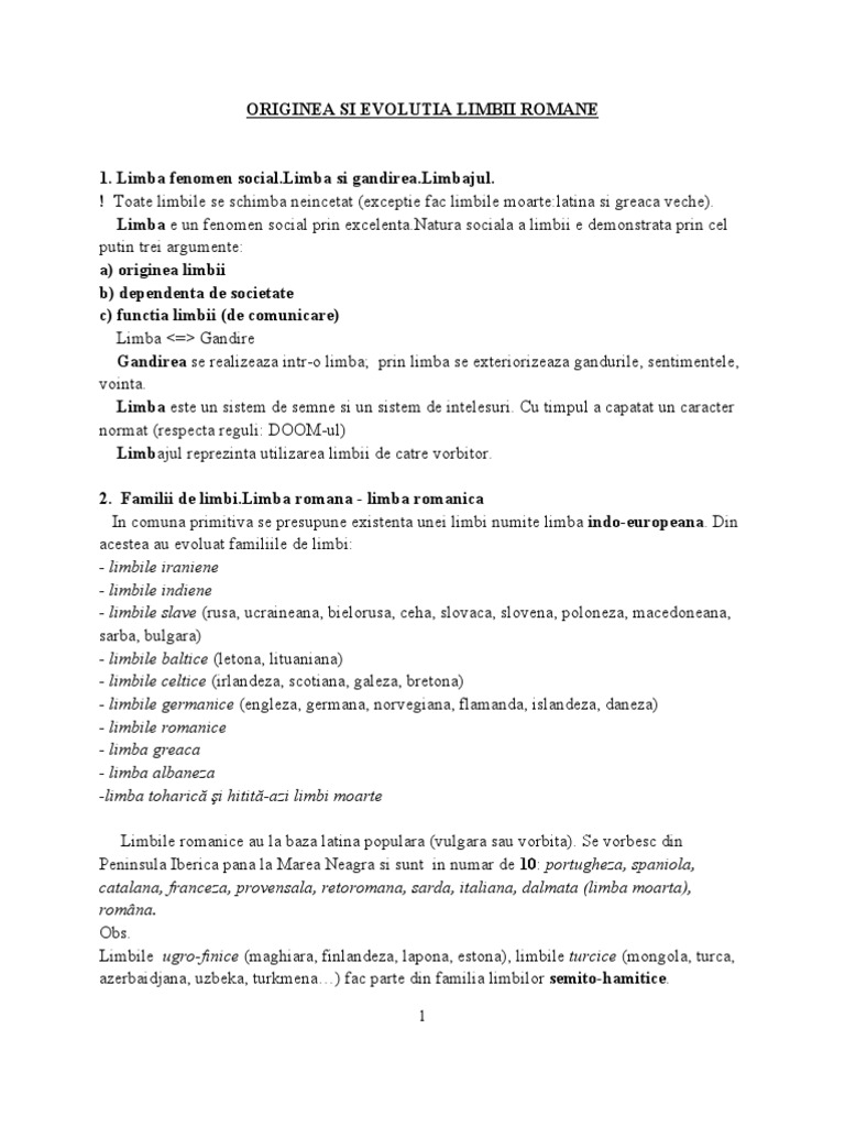 Curs Originea Si Evolutia Limbii Romane Romana 31723