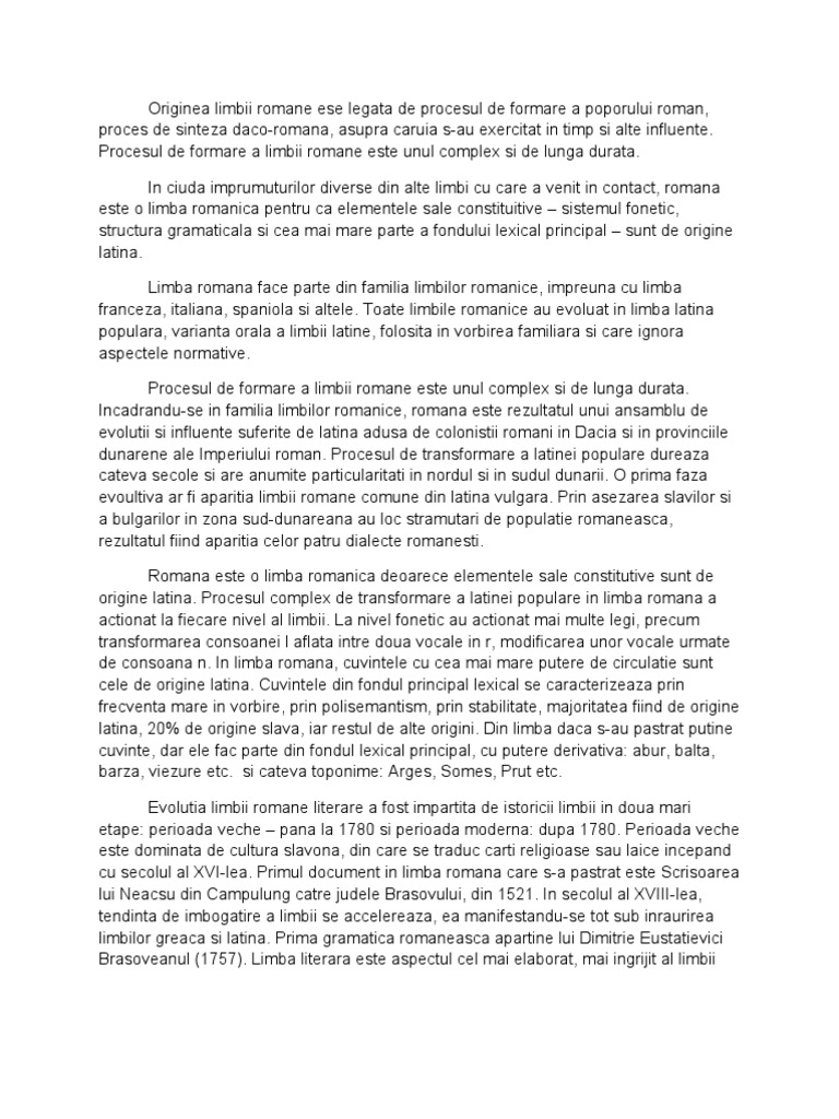 Referat Originea Si Evolutia Limbii Romane Romana 45944