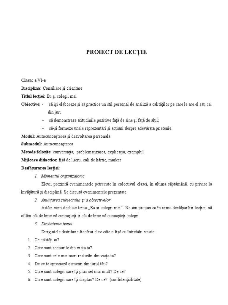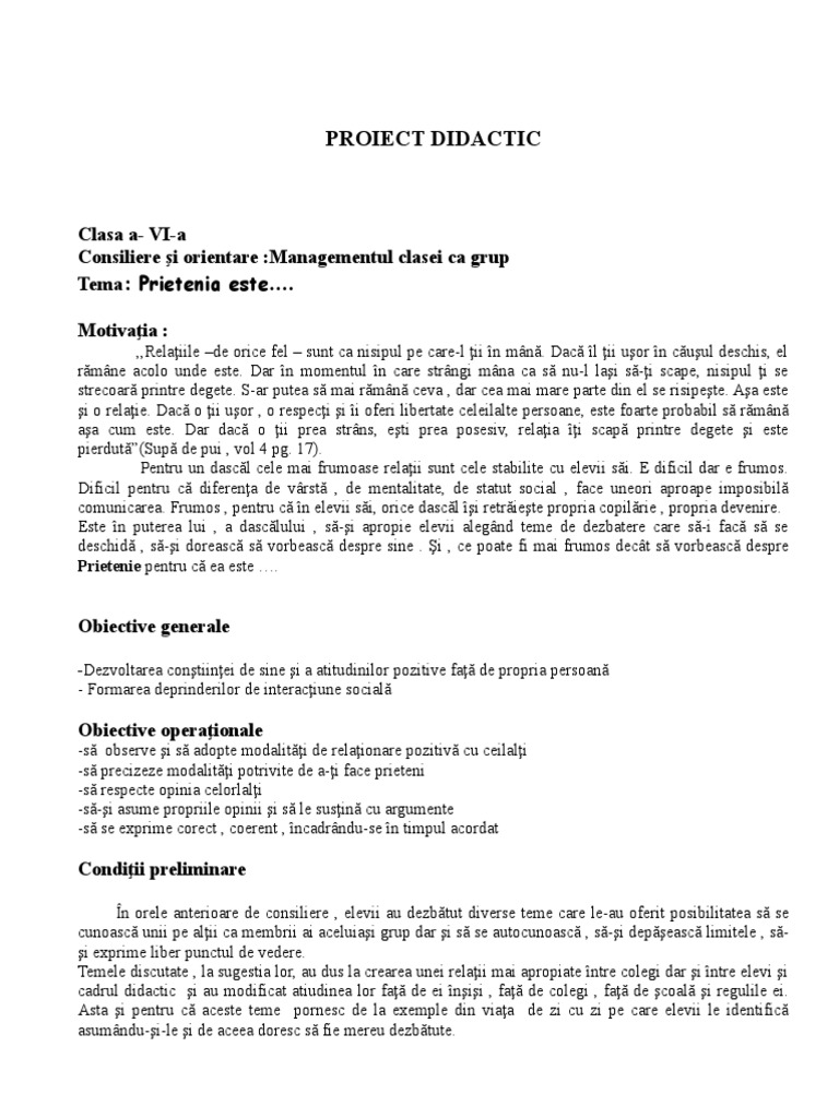 Proiect Proiect De Lectie Dirigentie Pedagogie 356023
