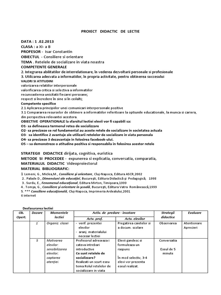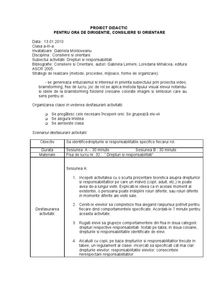 Doc Proiect Didactic Lectie Deschisa Dirigentie Rodica Damaschin Academia Edu