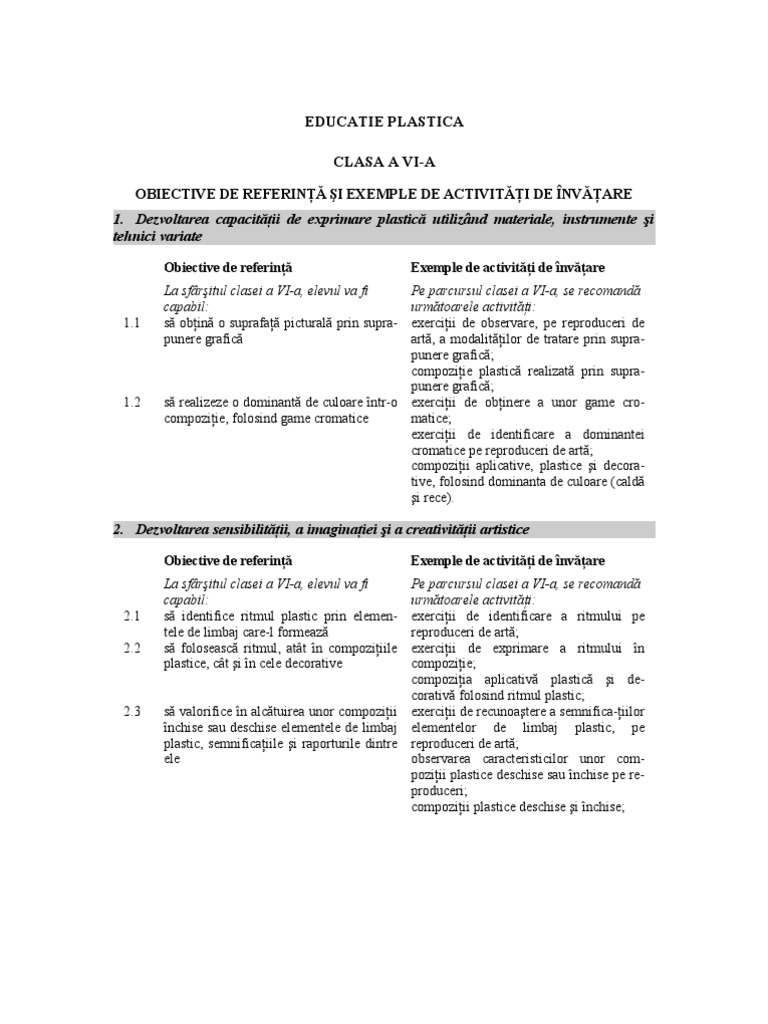 Planificare Educație Plastică Pentru Clasa A V A Planificari Clasa V A Planificări