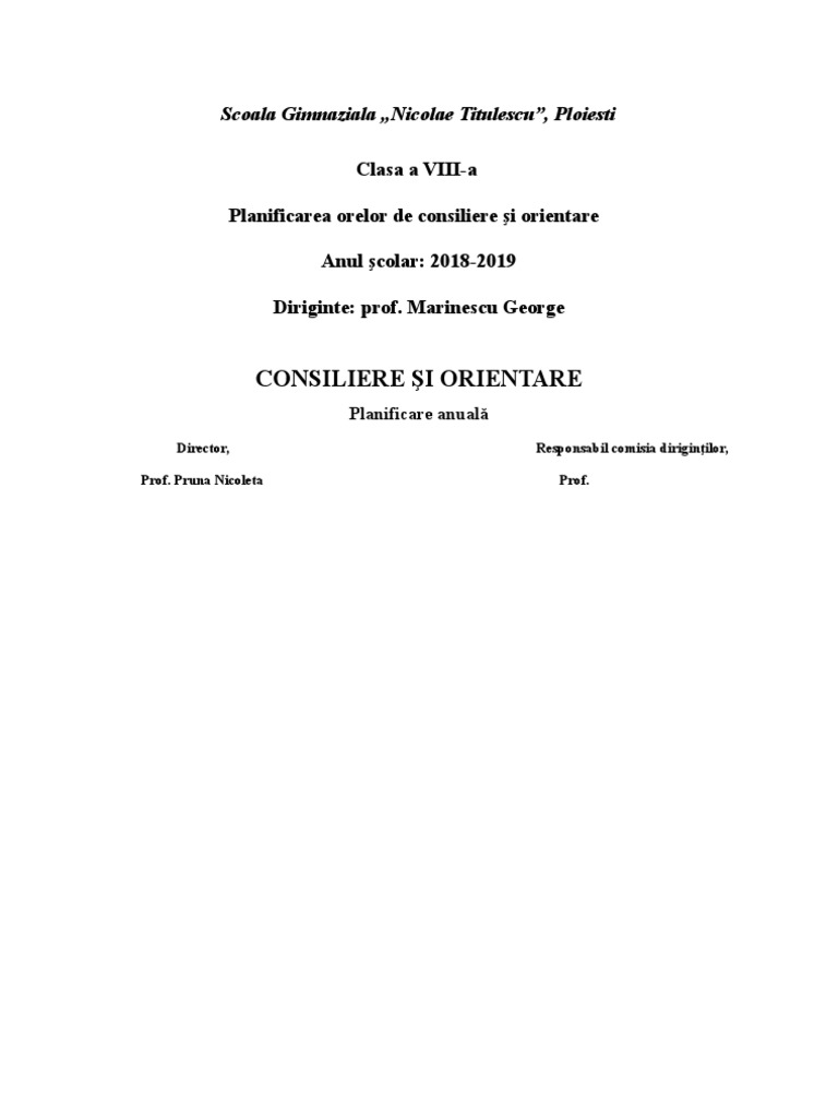 Doc Consiliere Si Orientare Planificare Anuală Si Calendaristică Clasa A Viii A Dospinescu Florin Academia Edu