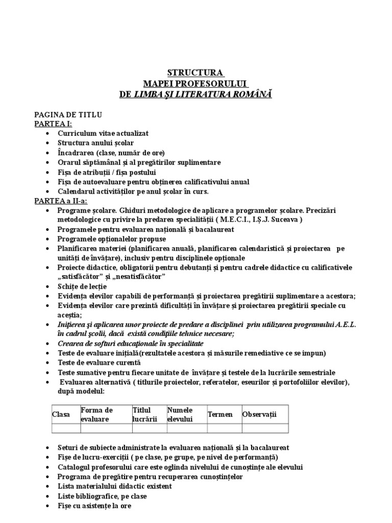 Portofoliul Profesorului De Limba Romana