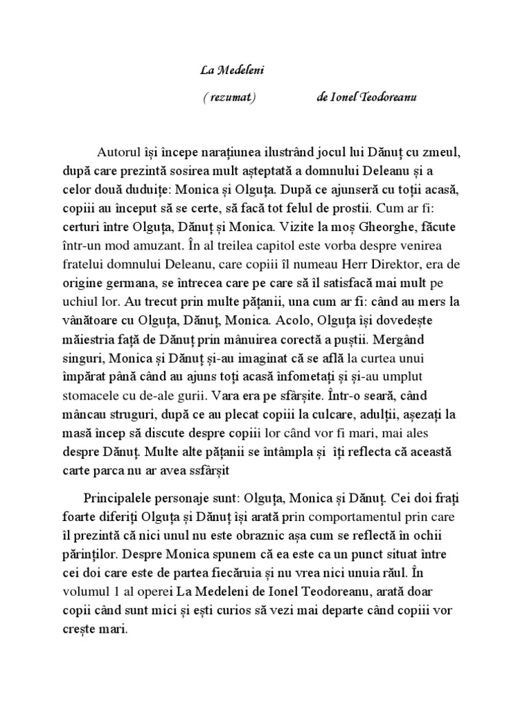 Va Rogg Vreu Si Eu Un Rezumat La Medeleni Vol 1 Dar Nu Pe Capitole Rezumatul Sa Aiba 3 Pagini Dau Brainly Ro