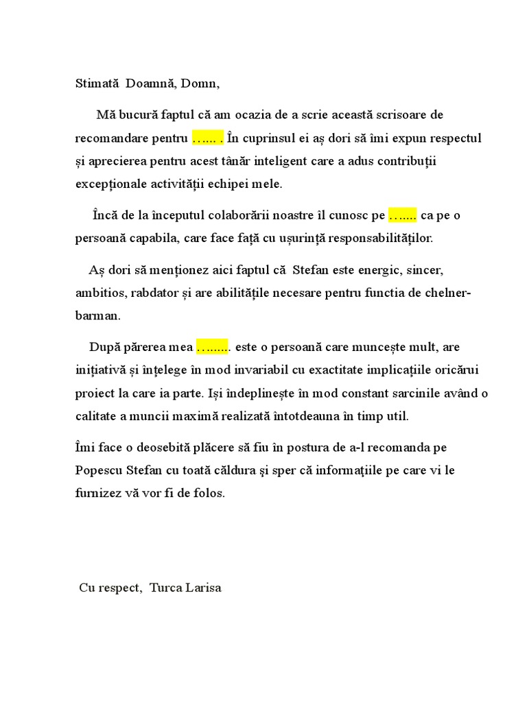Scrisoare De Recomandare Model Scrisoare In Limba Engleza Employee Business