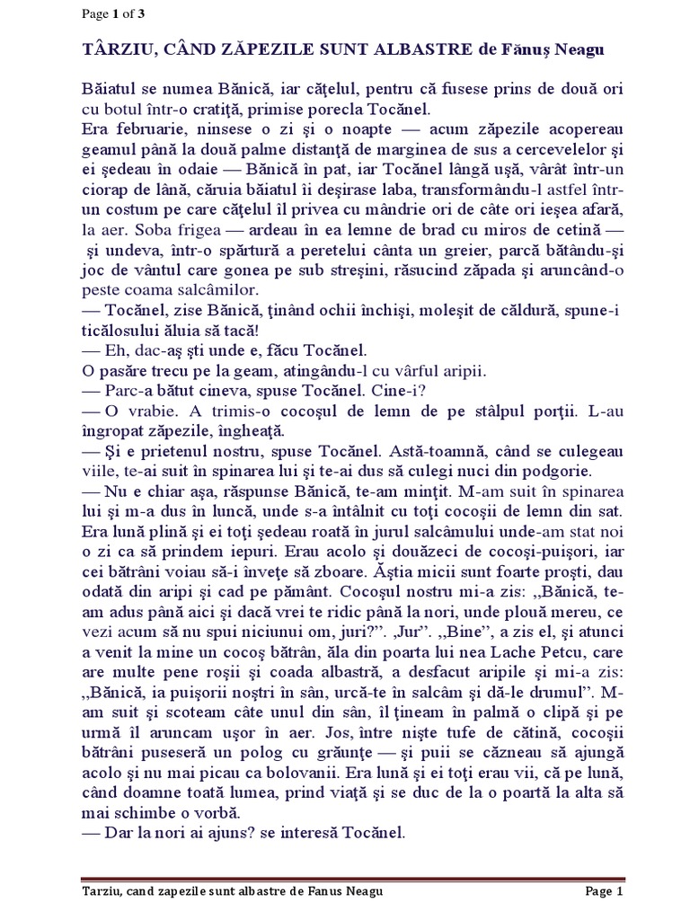 Lecturi de vacanţă citeşte cu atenţie textul de mai jos pentru a rezolva cerinţele. Proza târziu când zăpezile sunt albastre de fănuş neagu manual clasa a viii a edit. Tarziu cand zapezile sunt albastre fanus neagu titlul acestei opere literare are o pronuntata valoare metaforica zapezile albastre putand fi amintirile copilariei fericite pe care adultul scriitorul le traieste mai tarziu la maturitate. Era în februarie ninsese o zi și o noapte acum zăpezile acopereau geamul până la două palme de.