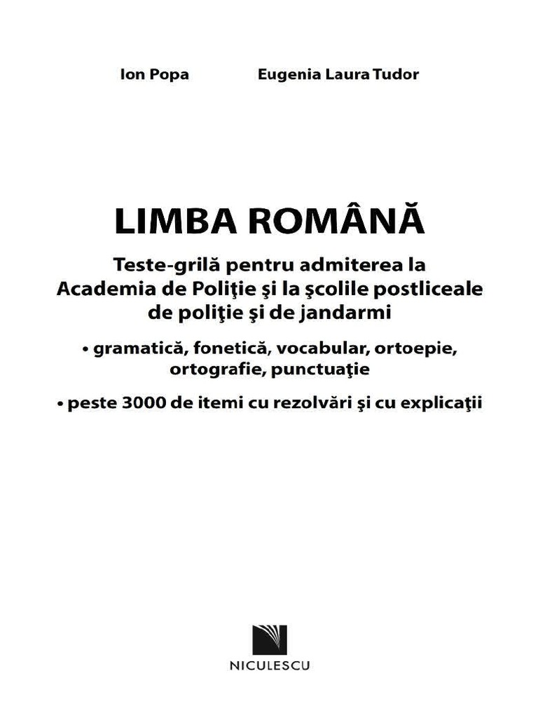 Limba Romana Teste Grila Pentru Admiterea La Academia De Politie Ion Popa Pdf