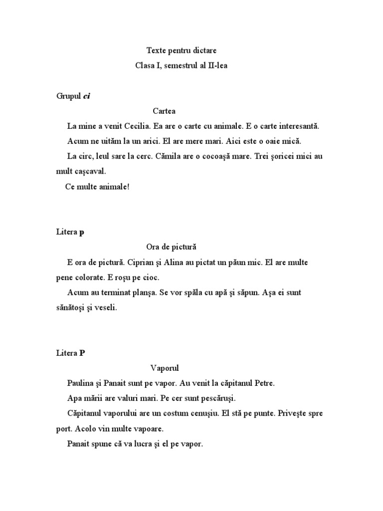 Texte Pentru Dictari Sau Pentru Controlul Individual Al Elevilor