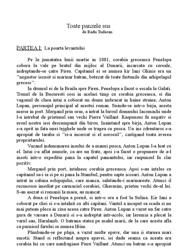 Toate Panzele Sus De Radu Tudoran Doc Toate Panzele Sus De Radu Tudoran Partea I La Poarta Levantului Pe La Jumatatea Lunii Martie In 1881 Corabia Course Hero