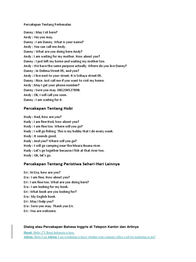 Percakapan Bahasa Inggris Contoh Perkenalan Liburan Sekolah Dsb